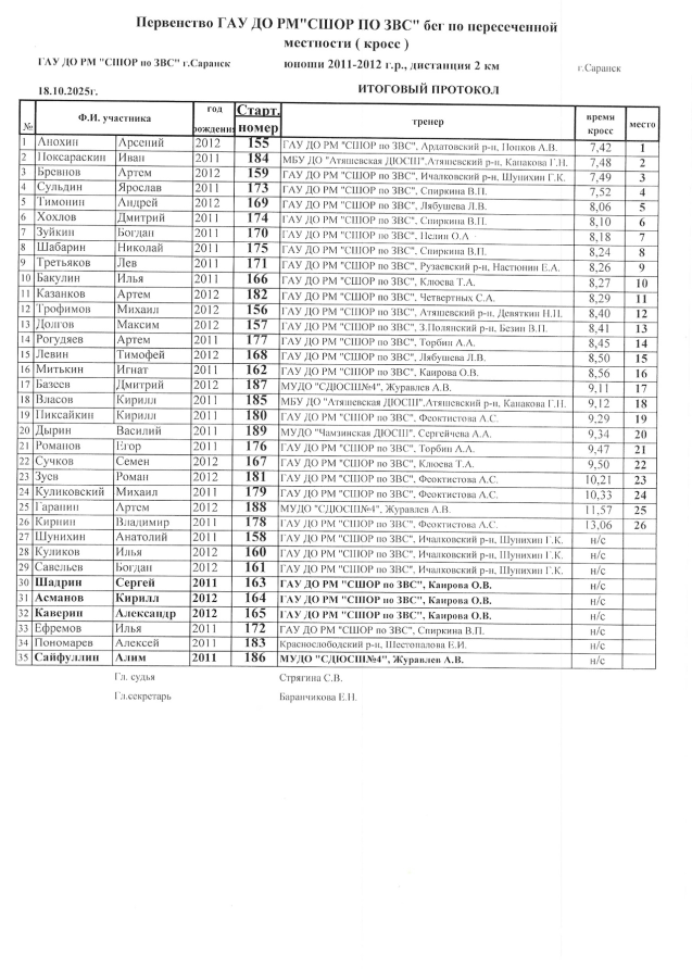 18 октября на Лыжно-биатлонном комплексе г. Саранск состоялось Первенство ГАУ ДО РМ «СШОР по зимним видам спорта» по бегу по пересеченной местности.